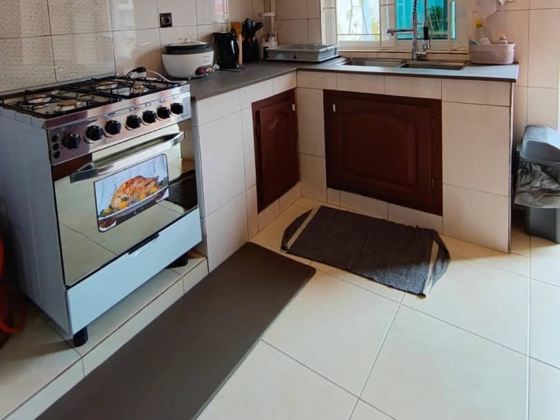 Très bel appartement meublé situé au rez-de-chaussée, entièrement climatisé dans toutes les pièces et à seulement 42 m de la Route des Pêches, avec un accès facile et une proximité directe à la plage. 42 m de la Route des Pêches – Fidjrossè Plage 6,3 km de l’aéroport international de Cotonou Compose de • 1 grand salon spacieux, aéré, lumineux et bien équipé • 1 chambre principale avec lit 3 places, écran TV, armoire 2 battants, WC douche privatif moderne • 1 seconde chambre avec 2 lits de 1 place (idéale chambre d’enfant), armoire 3 battants, WC douche privatif • 1 cuisine moderne et bien équipée • Cour entièrement gazonnée et fleurie • Garage pour 2 véhicules Services inclus gratuitement • Wifi haut débit & Canal+ • Agent de sécurité • Chauffe-eau • Eau (Soneb) à la charge du propriétaire • Électricité (Sbee) à la charge du locataire